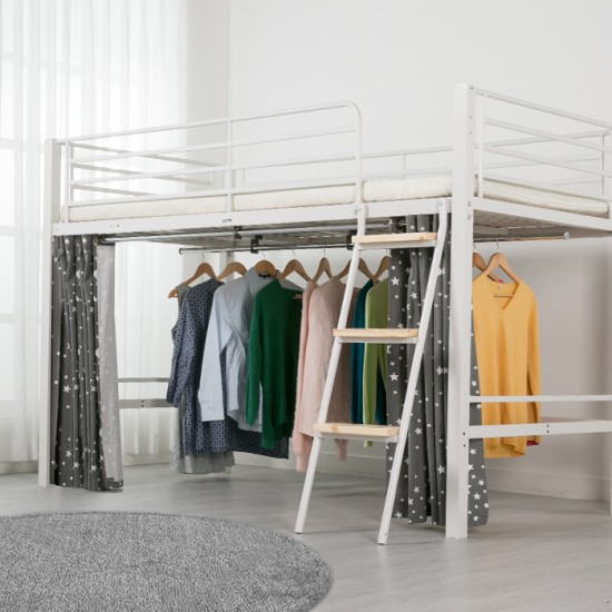 • (5%추가할인/익일배송) 럭키옷걸이형벙커철제침대프레임(원목발판+스틸행거증정+매트리스업그레이드)