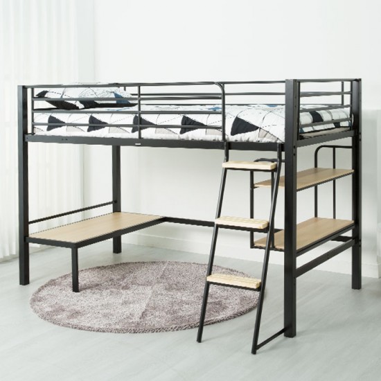 • (익일배송) 에보니아 럭키 좌식 철제 벙커프레임(원목발판+스틸행거증정+매트리스업그레이드) 책상+책장세트 무료설치 성인용벙커침대 싱글침대프레임  무료