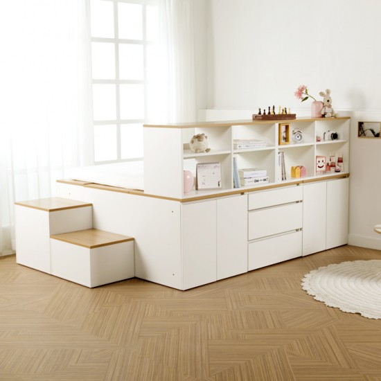 [구성 : 기본형선택(A,B,C,D)+확장형수납장2+계단세트+책상책장1] 수납이 가능한 모듈형 침대! 원하는 구성으로 조합하는 데니스