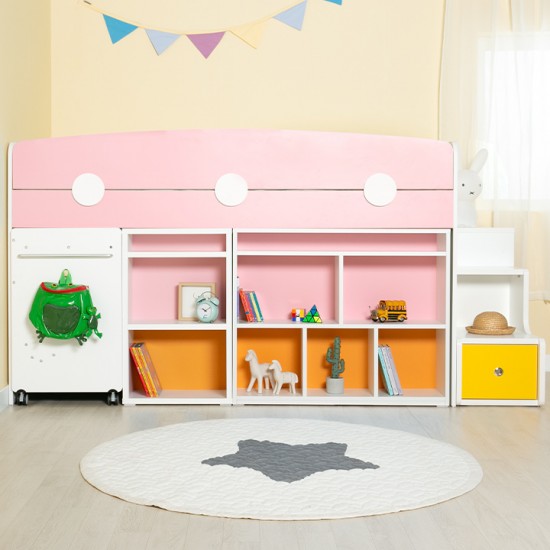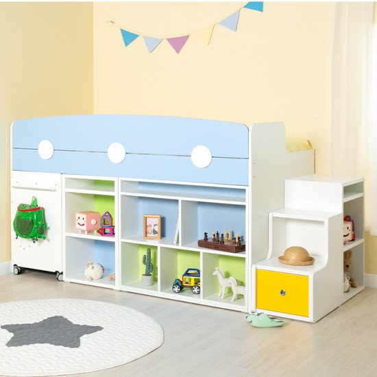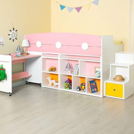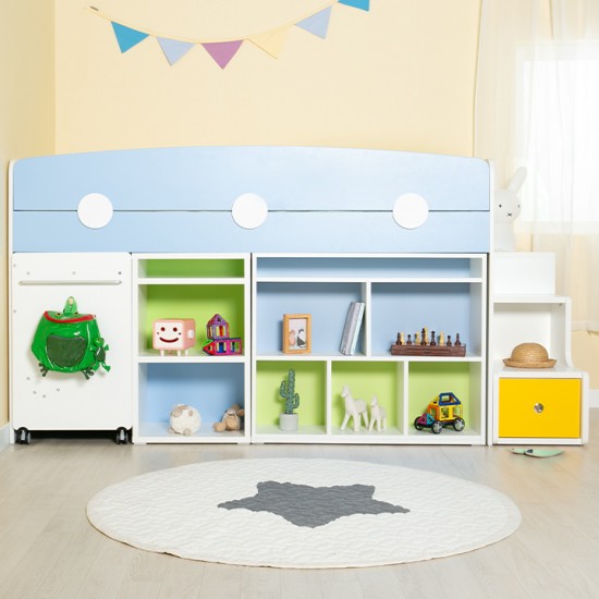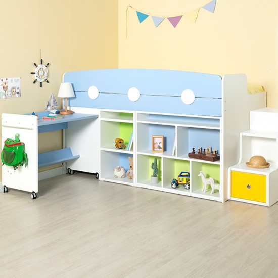 [구성:침대프레임+2000가드+서랍계단세트+980미니책장+500미니책장+이동식책상] E0 안심 자제로 사용한 우리아이 신나는 놀이터