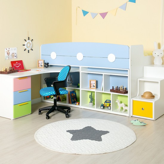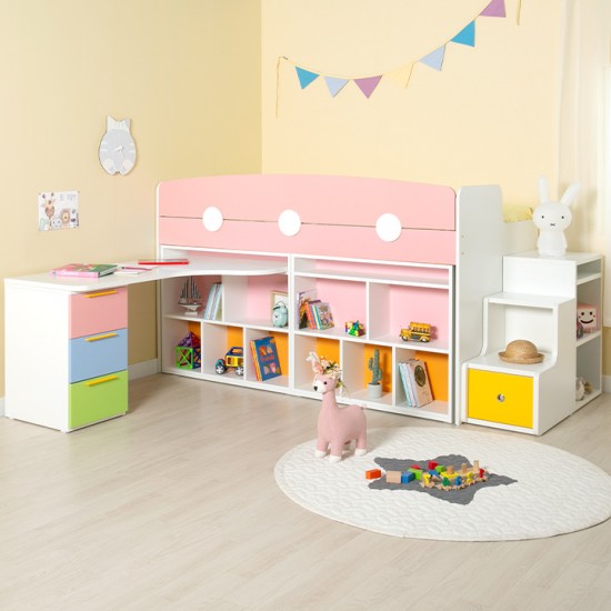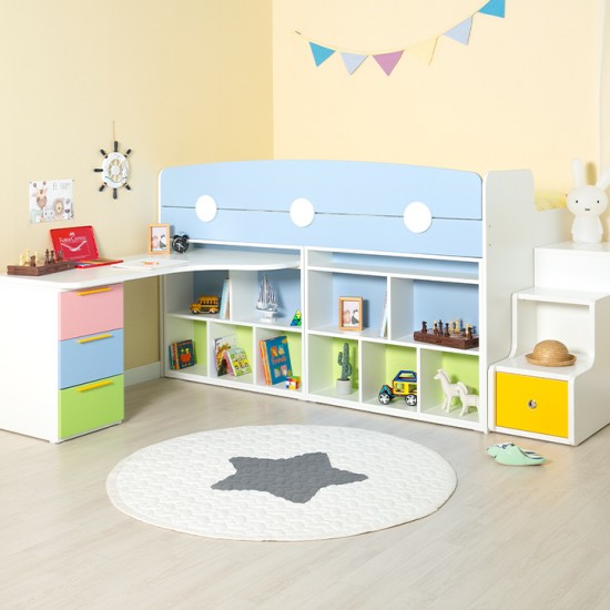 [구성:침대프레임+2000가드+서랍계단세트+980미니책장+H형책상세트] E0 안심 자제로 사용한 우리아이 신나는 놀이터