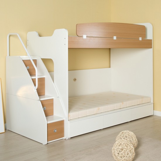 [구성:침대프레임+하부수납침대+수납계단+목재가드(오크/화이트)] 성인도 아이도 사용 가능한 수납형침대