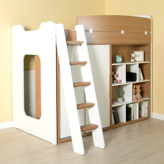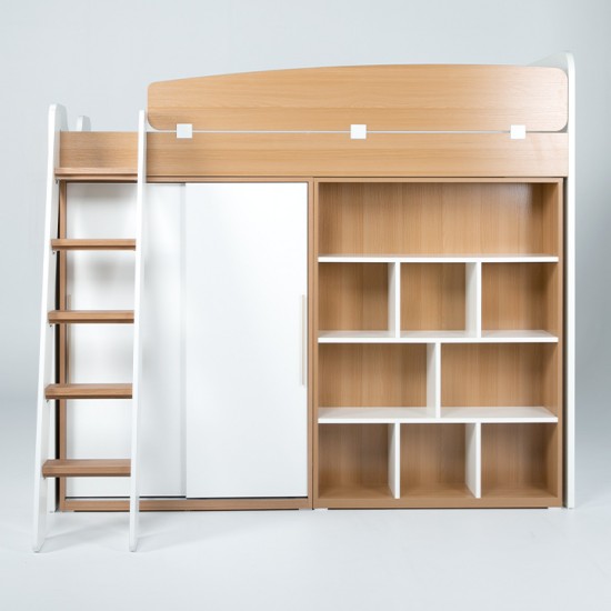 [구성:침대프레임+사다리+목재가드+책장B+슬라이드옷장] 성인도 아이도 사용 가능한 수납형침대