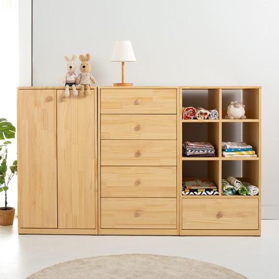 • 뉴레이원목3종 풀세트(5단서랍장+옷장+수납장)