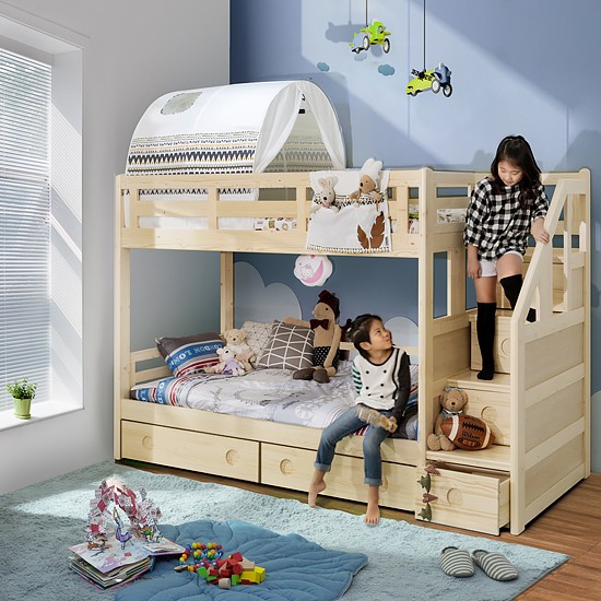 메인으로   (하부서랍포함) 에보니아미키계단형원목이층침대(싱글)(상하단 매트포함)