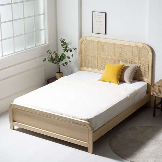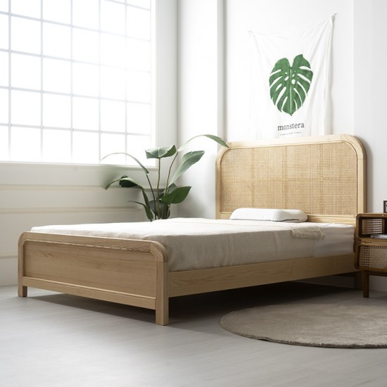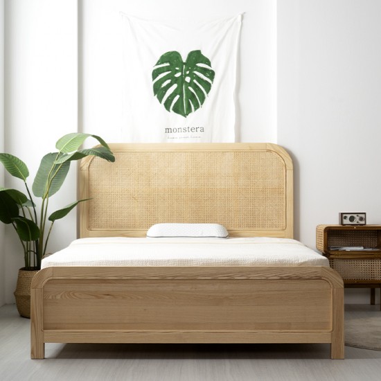 감각적인 라탄헤드 디자인 물푸레 나무 원목 침대