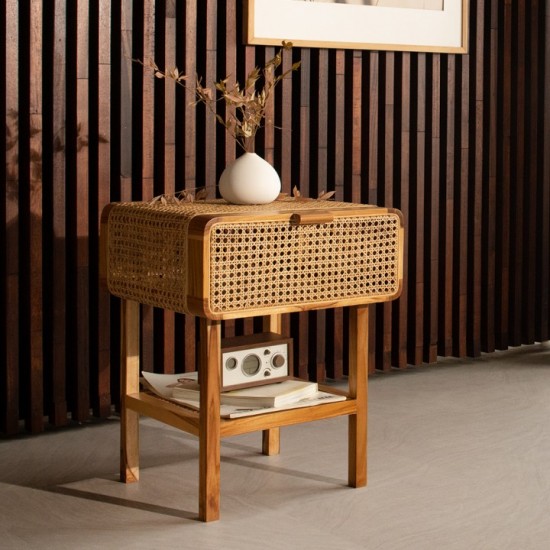 디자인과 수납력을 모두 갖춘 라탄 수납 테이블